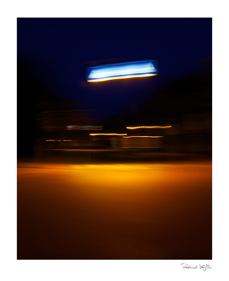 Ich fotografiere nicht kompetitiv, um besser als andere zu sein, sondern weil ich auf der Suche bin. Ich suche eine Welt jenseits der banalisierenden Etikette. Die Welt verstehe ich nicht als fixer Zustand, der sich durch möglichst viel Schärfe im Bild objektivieren lässt. Vielmehr verstehe ich die Welt als Prozess, als Interaktion zwischen Dingen. Nachts um zehn Uhr in einer fremden Stadt, begegne ich einer Szene die mich gefangen nimmt, die mich emotional berührt. Ich fühle mich hin gezogen, eingeladen Teil zu haben an einem Fest vibrierender Augenblicke, getüncht in dramatische Farbakkorde. Das Ding dahinter ist komplet belanglos. Es ist der Moment, die Begegnung, die Stimmung, das bei mir ausgelöste Gefühl, von einer zauberhaften Szene jenseits des Objekthaften begrüsst zu werden. Ob das nun eine Tankstelle ist oder der Eingang zu einem Bordell, ob es aber doch nur eine Aldi-Filiale ist oder eine Polizeistation… der Blick hinter das Objekt ermöglicht erst den Zugang zu einem Moment.