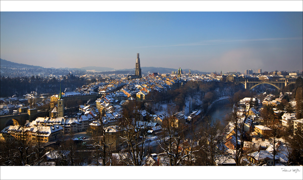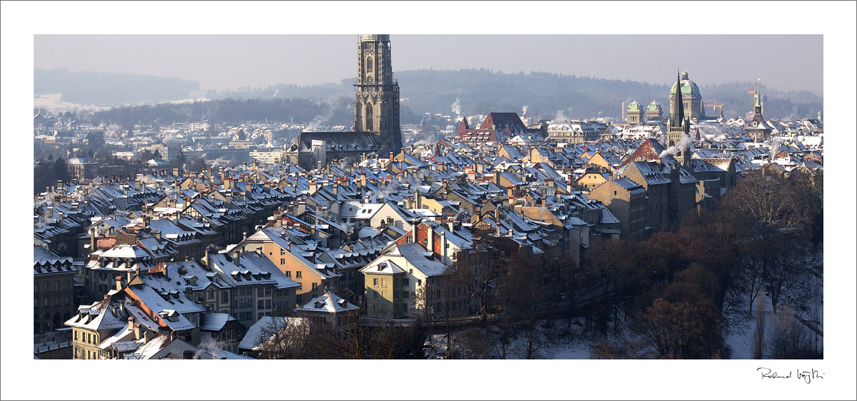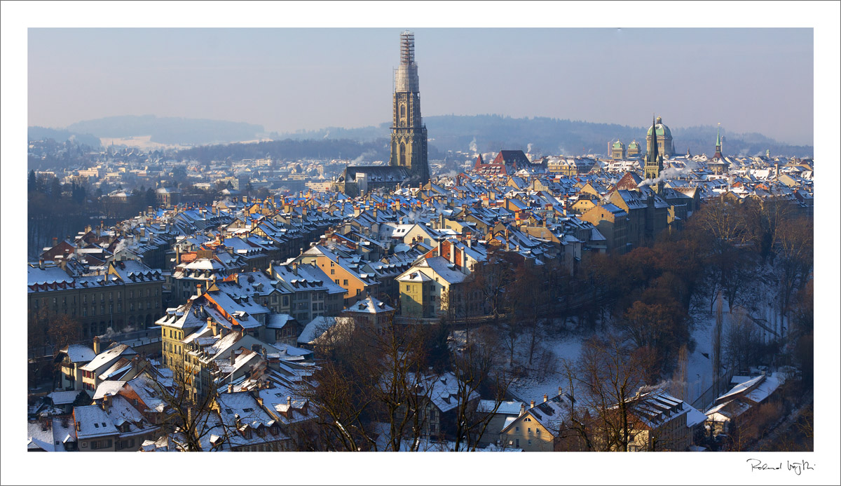 Five times Bern as seen from the Rosengarten. I drove up there with my bicycle in -20°C on a (relatively) early Saturday Morning. In the cozy, warm digital darkroom, I did approach Bern in five different modes. (Please look at the bigger versions. The smaller ones really lack so many detail). I’d love to read which approach works best for you.