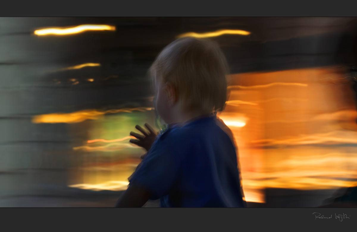 Angeschrien von Werbung und kommerziellem Blendwerk. Der laute und penetrante Versuch der modernen Welt, Werte und Normen aufzudrängen. Und mitten drin steht ein kleines Kind und betrachtet die Lichter und das Treiben mit einem weltoffenen, staunenden und sich wundernden Blick. Oh, wie ich mir wünsche, dass das Kind Freude an den Lichtern und Farben, der Bewegung und der Rhythmik behalten kann, ohne den niederen Bestrebungen der Werbung zu erliegen.
